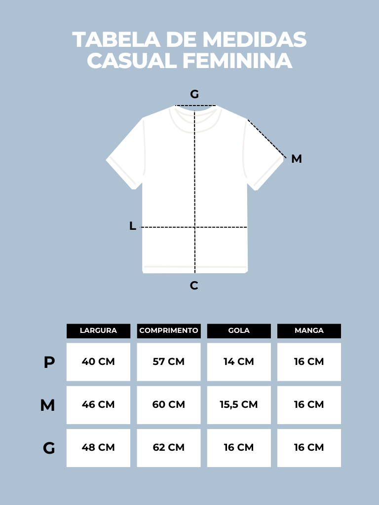 Dica: Compare as medidas com uma camiseta que você já tenha.